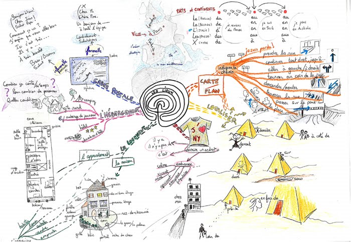J’ai commencé par réaliser des cartes pour organiser mes cours (par séquences ou par thèmes), j’ai constaté rapidement que j’étais plus à l’aise, plus précise et plus présente pour les étudiants.