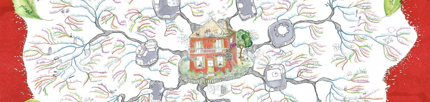 Du centre (la maison) sortent des branches qui nous amènent dans chaque pièce (cuisine, salle de bain etc…) avec le vocabulaire des meubles et machines.