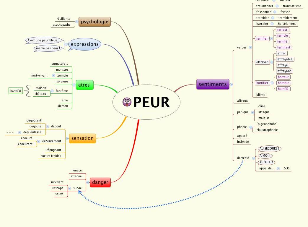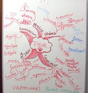Voici un autre exemple d’utilisation de la carte pour réunir et organiser le vocabulaire dans le but de le réutiliser par la suite.