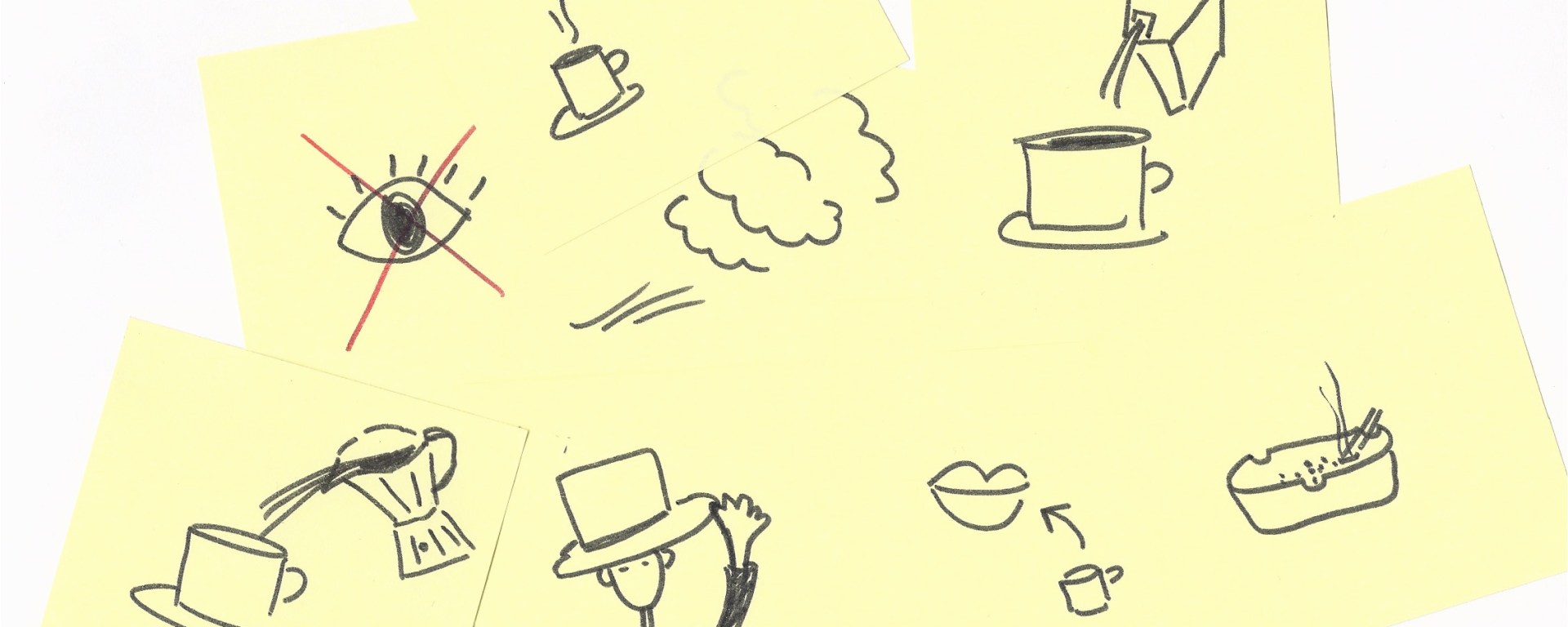 Sur des post-it, on demande aux apprenants de dessiner une image qui évoque un vers du poème (et non pas une illustration). Il s’agit d’un dessin personnel, sorte de clé qui permettra d’accéder au vers tout entier. Pour ce poème, il faut en réaliser 21 (un dessin par post-it).