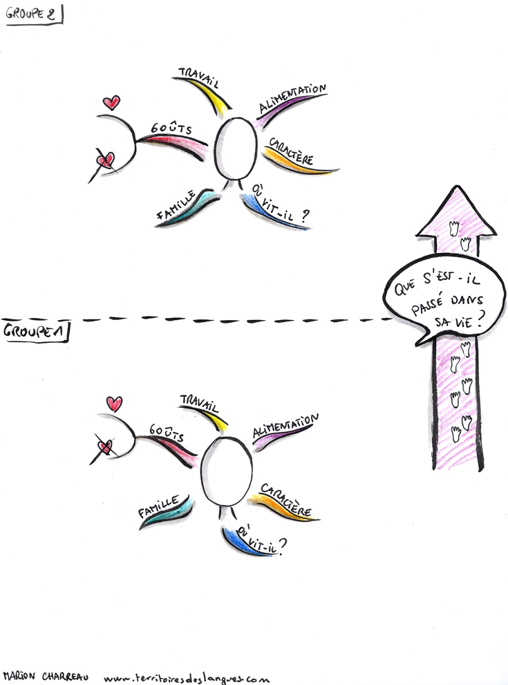 Ensuite, on imagine le chemin d’un « personnage vers l’autre » à l’oral et/ou en rédigeant un texte. Les élèves utiliseront l’imparfait, le passé composé, le présent pour plonger dans sa vie.