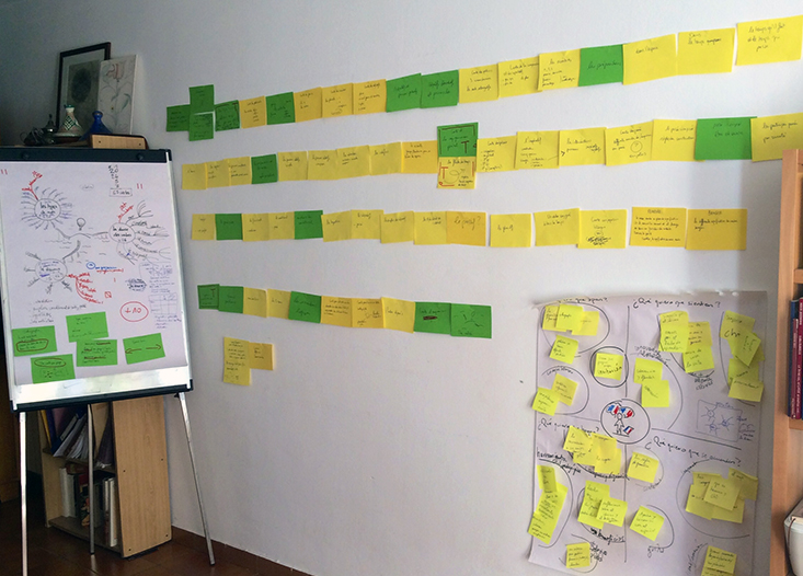 • Deuxième étape: mettre à plat toutes ses idées, qu’elles nous semblent bonnes ou moins bonnes. Pour cela il est préférable de travailler au mur, cela permet de prendre du recul et c’est ludique.
