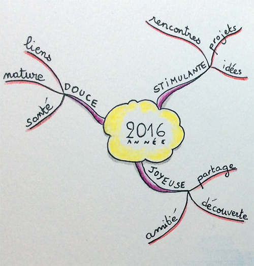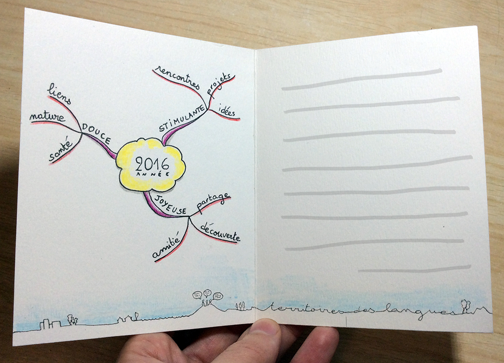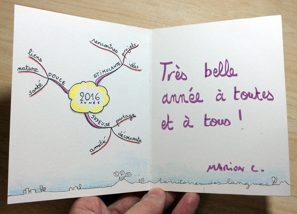 Voici une phrase que j’ai entendue récemment et qui me donne une idée pour débuter l’année: envoyer une carte de voeux à l’aide d’une carte mentale.